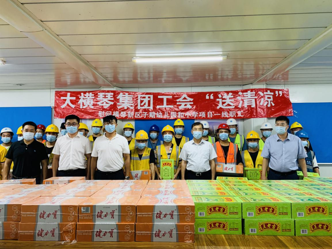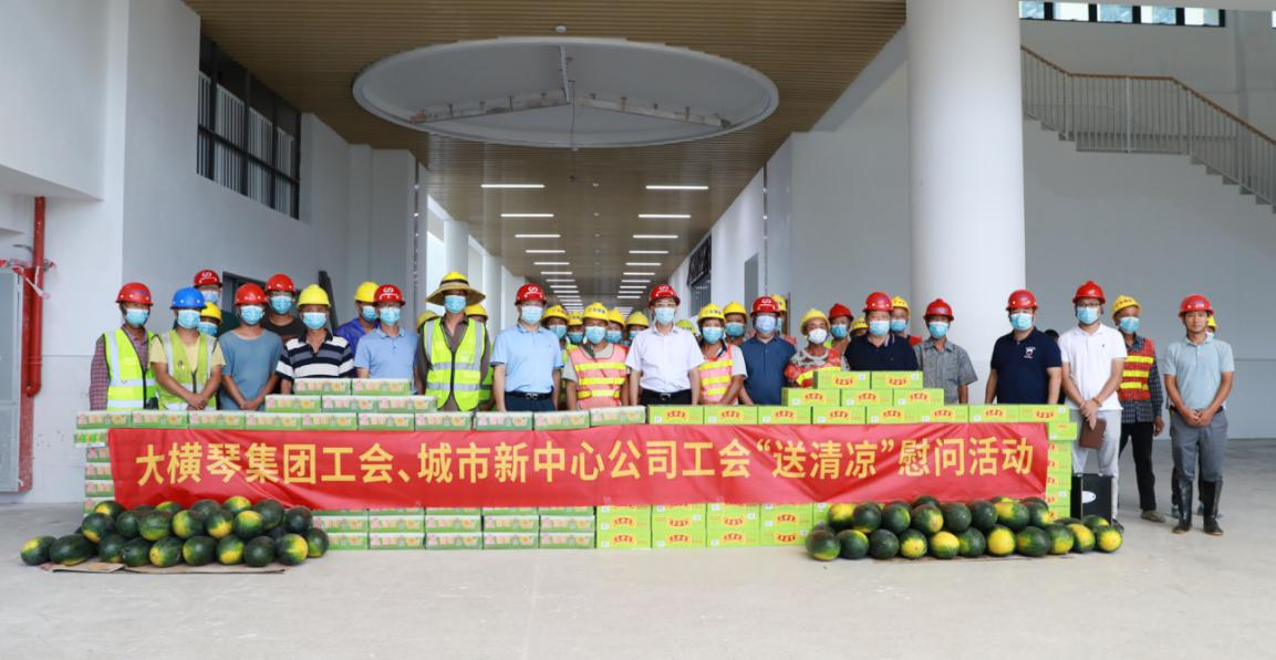 為進一步加強高溫作業(yè)職工勞動保護工作,關(guān)愛堅守在項目一線的建設(shè)者,2021年7月,大橫琴集團黨委書記、工會主席田偉帶隊分別赴科學(xué)城(二期)標段一、標段二項目、橫琴醫(yī)院項目、橫琴新區(qū)子期幼兒園和小學(xué)及保稅一小工程項目開展夏日送清涼慰問活動。