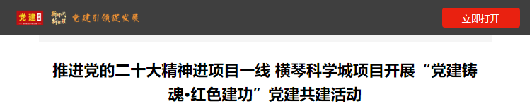 “本次‘黨建鑄魂·紅色建功’黨建共建活動是在大橫琴集團打造橫琴科學城項目黨建聯建生態(tài)圈的基礎上的一次深化拓展,對推動黨建和項目建設的融合發(fā)展,引導一線黨員堅定理想信念,牢記黨的宗旨,增強責任擔當,有著積極意義,將進一步推動黨的二十大精神在重大項目一線落地見效?!贝髾M琴集團黨委書記田偉介紹。