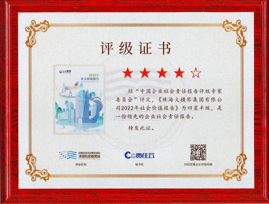 今年,《珠海大橫琴集團有限公司2022年社會價值報告》首次納入中國企業(yè)社會責(zé)任報告評級專家委員會評級,并被評定為四星半級,是一份領(lǐng)先的企業(yè)社會責(zé)任報告。大橫琴集團將報告定位為披露社會責(zé)任信息、提高公司內(nèi)部社會價值管理水平、強化利益相關(guān)方溝通、傳播企業(yè)社會責(zé)任品牌形象的重要工具,系統(tǒng)展示了大橫琴集團在關(guān)鍵議題下的履責(zé)理念、實踐與成效,全面回應(yīng)了利益相關(guān)方的期望與訴求。