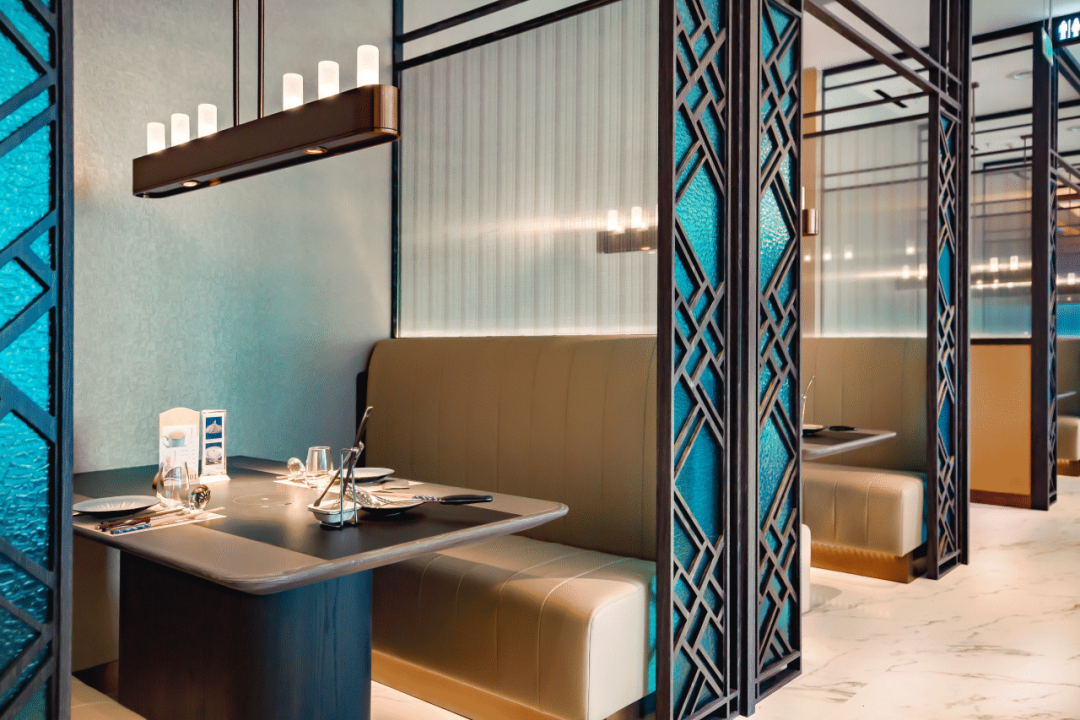 幾何裝飾拼接詩(shī)意畫幕,現(xiàn)代輕奢風(fēng)格,舒適恬靜,是商務(wù)宴請(qǐng)和親友聚會(huì)的絕佳選擇。