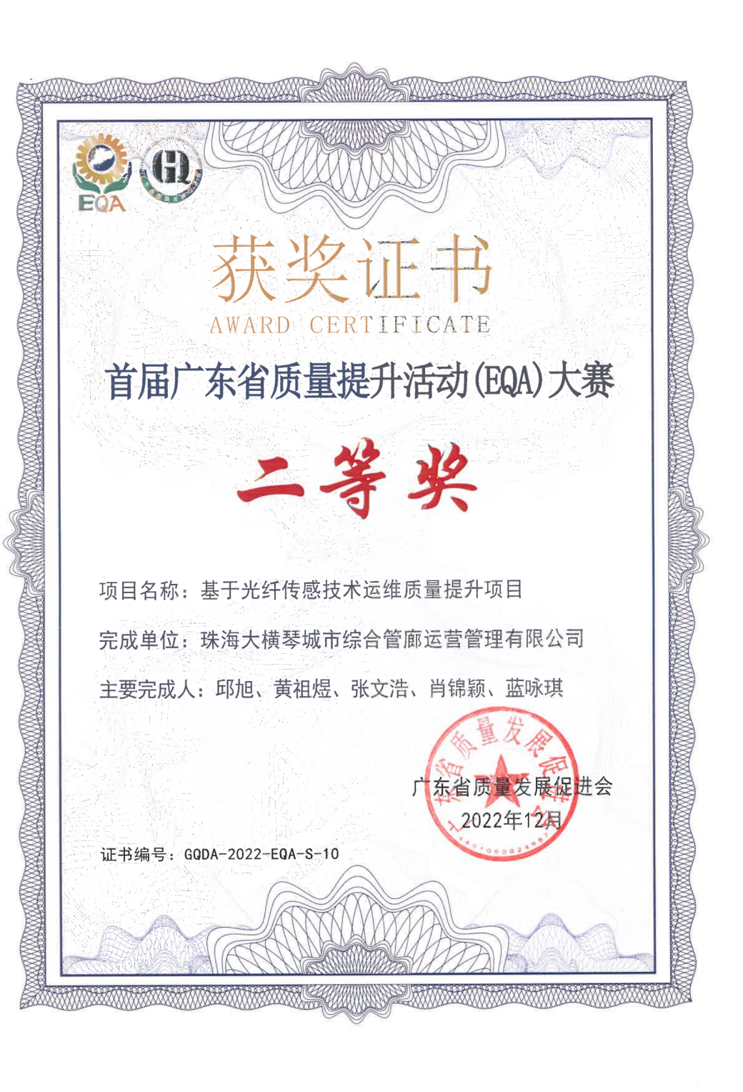 作為國內(nèi)先行成立的專業(yè)化綜合管廊運(yùn)維單位,大橫琴管廊公司先后與復(fù)旦大學(xué)、哈爾濱工業(yè)大學(xué)、中山大學(xué)建立了產(chǎn)學(xué)研合作,構(gòu)建產(chǎn)學(xué)研一體化人才培養(yǎng)生態(tài),整合優(yōu)質(zhì)資源,培養(yǎng)創(chuàng)新型人才。團(tuán)隊(duì)的研究成果獲中國市政工程協(xié)會管廊及地下空間專業(yè)委員會的“管廊優(yōu)秀科技成果獎”和首屆廣東省質(zhì)量提升活動(EQA)大賽二等獎。