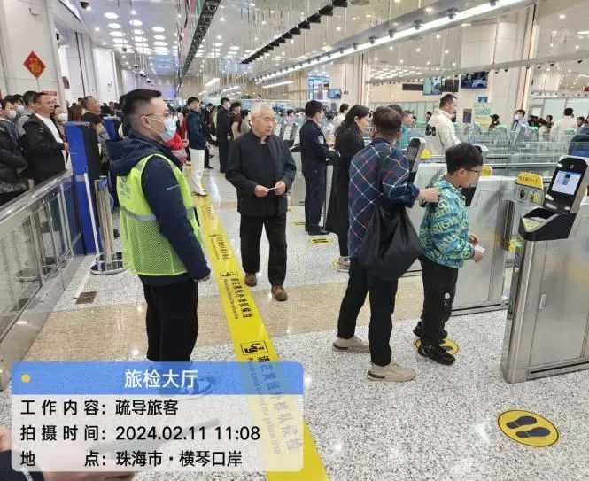 相較往年,今年春節(jié)橫琴口岸呈現(xiàn)出客流高峰提前、持續(xù)時(shí)間長(zhǎng)、出入高峰疊加等特點(diǎn),2月11日至16日(大年初二至初七)連續(xù)6天出入單向客流均超過(guò)3萬(wàn)人次。其中,2月12日(大年初三)橫琴口岸單日客流超8.2萬(wàn)人次,創(chuàng)橫琴口岸成立以來(lái)歷史新高。為應(yīng)對(duì)春節(jié)期間口岸高位客流,珠海大橫琴口岸實(shí)業(yè)有限公司(下稱大橫琴口岸公司)節(jié)前召開(kāi)專(zhuān)題會(huì)議,提前部署應(yīng)急人員、物資、設(shè)備等通關(guān)安全保障;春節(jié)期間,根據(jù)客流量變化,大橫琴口岸公司通過(guò)科學(xué)增加人力、設(shè)置蛇形緩沖通道、屏幕投放指引等措施,多管齊下加強(qiáng)出入境旅客分流引導(dǎo),防止因高客流量發(fā)生擁擠、踩踏等治安事件的發(fā)生。另外在現(xiàn)場(chǎng)設(shè)置“特別通道”,為老人、孕婦和殘疾人等行動(dòng)不便的旅客提供便利,并設(shè)置了醫(yī)療救援,以備過(guò)關(guān)旅客有不時(shí)之需。