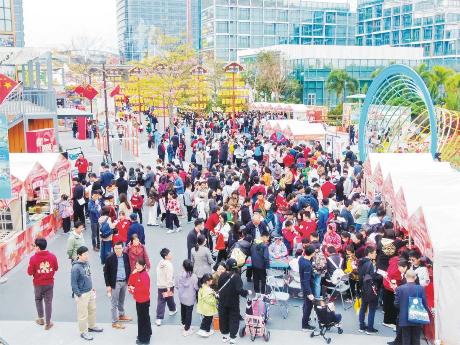 趣味遊園遊戲活動(dòng)由大橫琴集團(tuán)旗下的13家二級(jí)企業(yè)承辦,以「一企一特色、一家一品牌」為主調(diào),既有猜燈謎、剪窗花等民俗活動(dòng),也有數(shù)字華容道、幸運(yùn)射箭等現(xiàn)代遊戲,煙火氣十足,又不乏文化味,為遊客帶來了一場(chǎng)年味十足的節(jié)日盛宴?;顒?dòng)現(xiàn)場(chǎng)還引入了澳門美食攤位,不少市民及遊客駐足攤位前品嚐地道澳門美食。