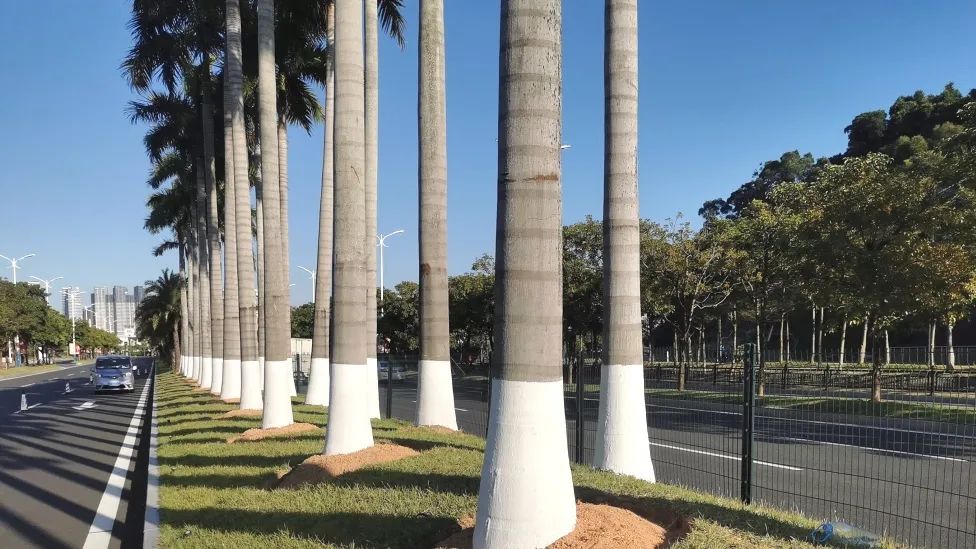 為了減少病蟲害發(fā)生,做好秋冬季樹木養(yǎng)護(hù)工作,2023年10月,大橫琴城資以橫琴大道為示范點(diǎn)開展喬木涂白工作,為喬木逐一披上美觀溫暖的“防護(hù)衣”。