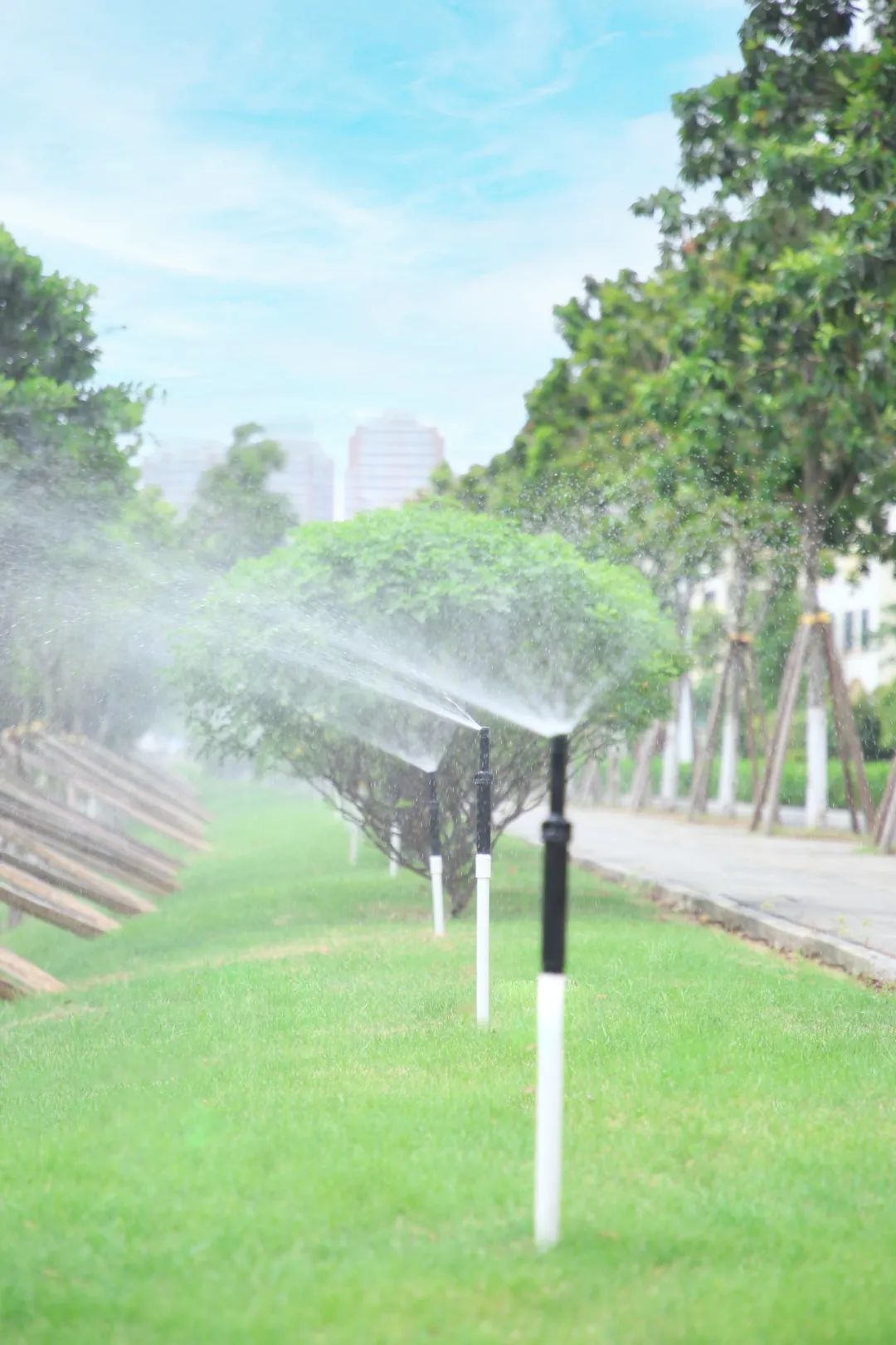 改造過程中,因地制宜開展精細(xì)化修剪和作業(yè),讓苗木煥發(fā)出蓬勃的生機(jī)與活力,并升級綠化澆灌系統(tǒng),采用灑水車+噴淋系統(tǒng)相結(jié)合的澆灌方式,切實(shí)提升綠化管養(yǎng)水平。此外,將綠植與造景相結(jié)合,在重要節(jié)點(diǎn)處打造道路小景,注重景觀層次和植被多樣豐富性,營造綠意盎然、自然和諧的城市綠化空間。