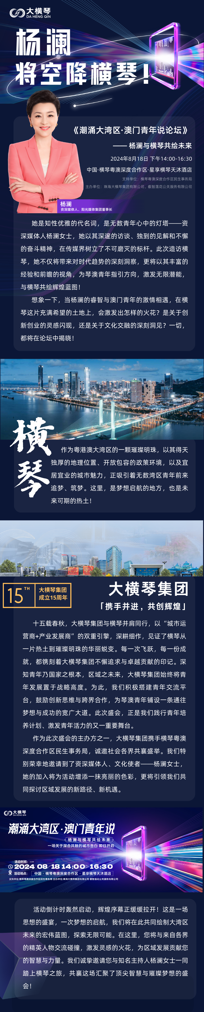 8月18日楊瀾將空降橫琴,共繪大灣區(qū)璀璨未來!