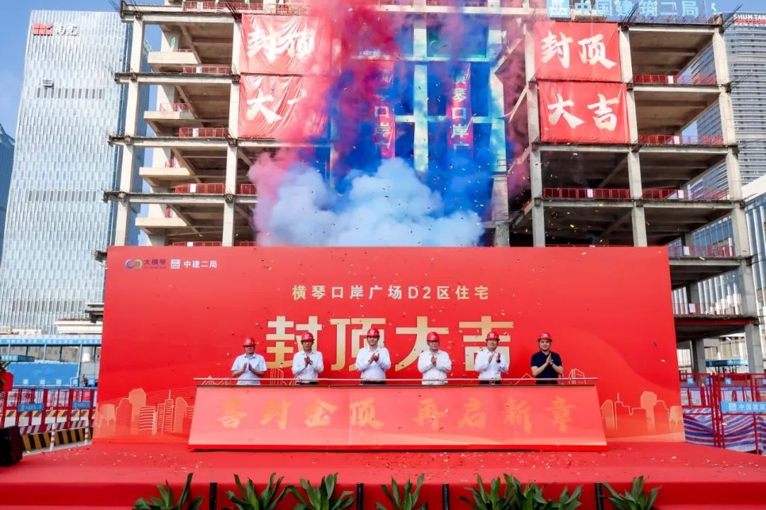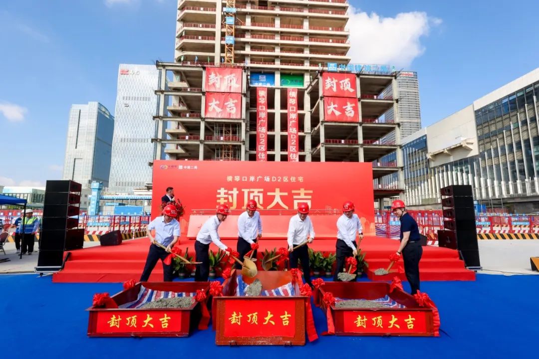 9月27日上午,由珠海大橫琴集團有限公司(以下簡稱大橫琴集團)下屬企業(yè)珠海大橫琴口岸實業(yè)有限公司建設的橫琴口岸D2區(qū)住宅主體結構順利封頂。大橫琴集團黨委副書記、董事、總經理王宇聲,中建二局華南公司黨委書記、董事長曲紅波,大橫琴集團總經理助理呂海濤等領導嘉賓出席儀式,各參建單位代表及項目一線職工共計100余人參加活動。