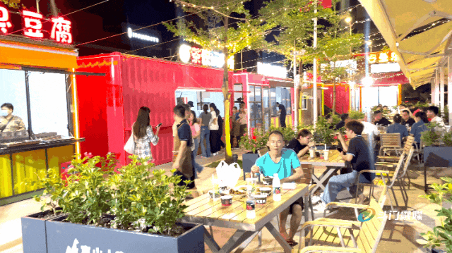 現(xiàn)場(chǎng)可以看到街市的攤主們正忙著“開張”做生意,不少剛下班的產(chǎn)業(yè)工人三三兩兩圍坐一起,一邊品嘗美食,一邊暢聊人生,十分愜意。