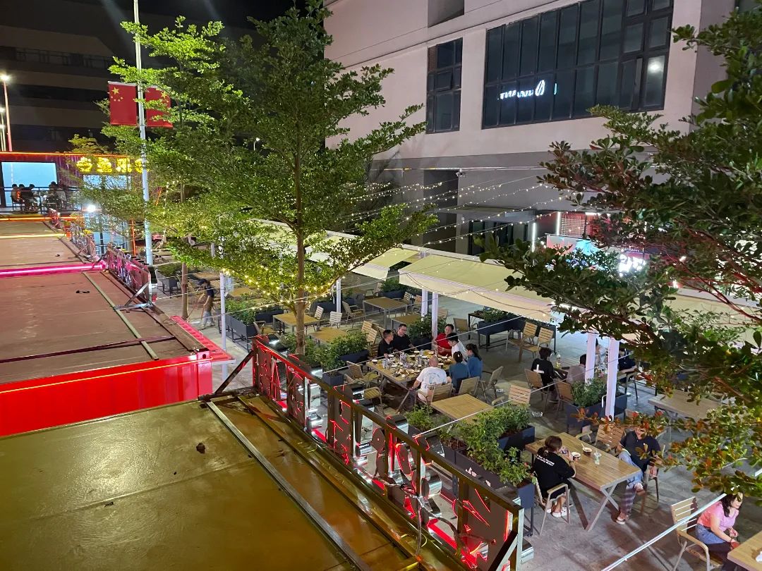富山街市位于斗門(mén)大橫琴5.0產(chǎn)業(yè)新空間,坐落于B區(qū)公服中心西側(cè),占地面積1200㎡,有11個(gè)攤位,多個(gè)五顏六色的集裝箱錯(cuò)落有致,儼然是工廠風(fēng)的商務(wù)區(qū)—“廠BD”。
