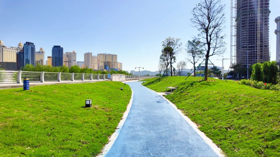 琴海東路位于橫琴島東側(cè),沿濠江而建,全長(zhǎng)4.8公里,與澳門隔江相望,這里自帶“濾鏡”,是橫琴游客觀光打卡的絕佳之地。
