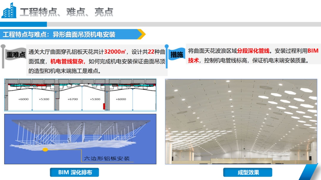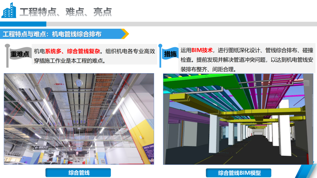 本次獲得“2023-2024年度中國安裝工程優(yōu)質獎(中國安裝之星)”關鍵點在于,橫琴口岸及綜合交通樞紐工程由A區(qū)B區(qū)、C區(qū)主體建筑及南北側交通平臺組成,機電施工內容包括建筑給排水及采暖、通風與空調、建筑電氣三個分部工程。作為一個大體量機電工程,項目機電系統(tǒng)多、綜合管線復雜。在項目建設過程中,承建團隊運用BIM技術,對圖紙進行深化設計、對管線綜合排布并進行碰撞檢查,提前發(fā)現(xiàn)并解決管道沖突問題,以達到機電管線安裝排布整齊、間距合理,確保了本次順利“摘星”。